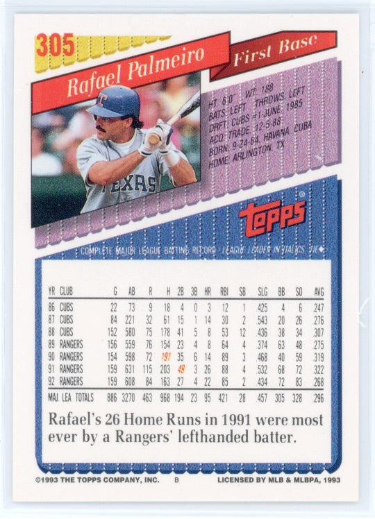 1993 Topps Rafael Palmeiro Card