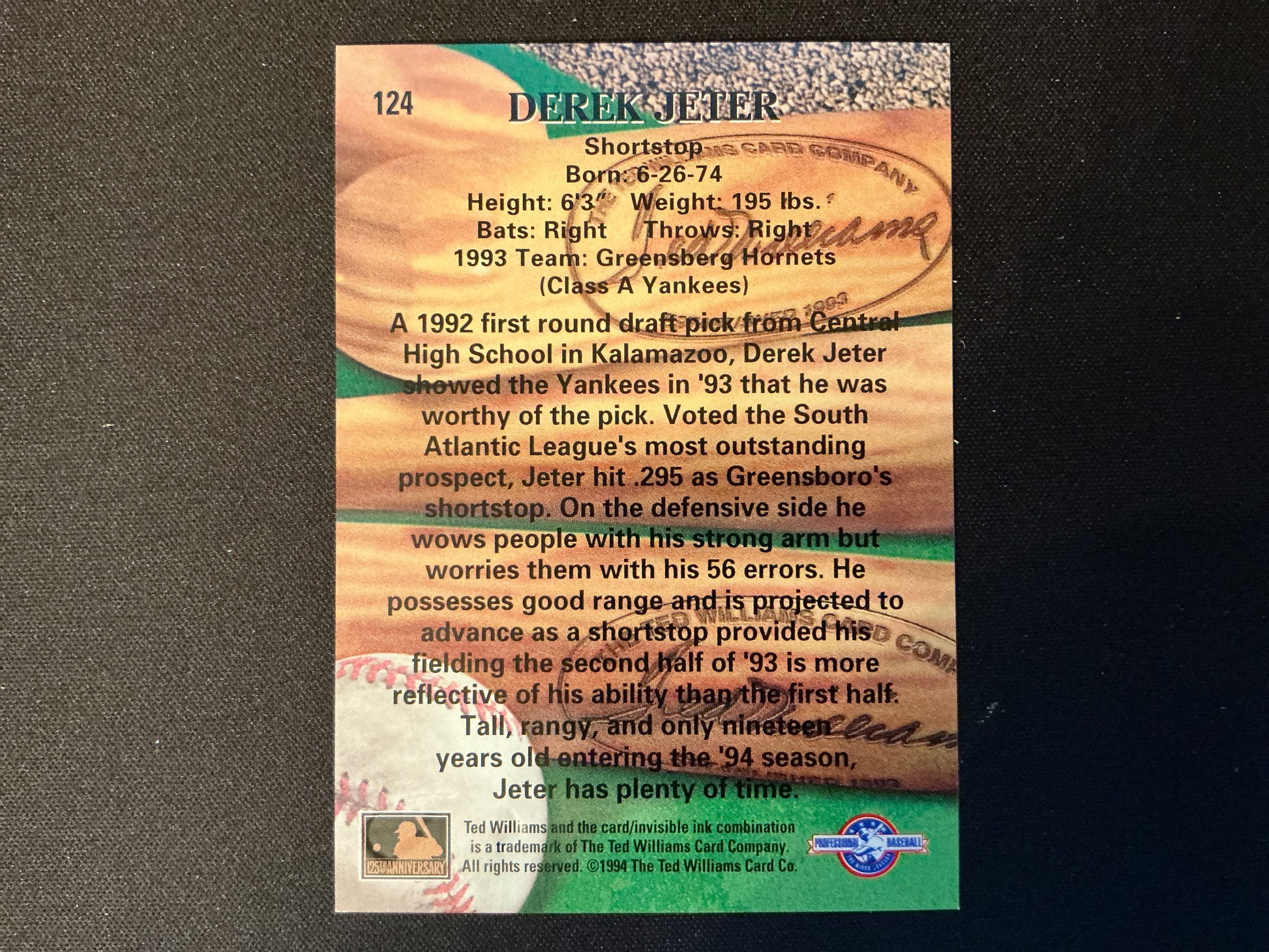Tarjeta de Derek Jeter n.° 124 de Ted Williams de 1994