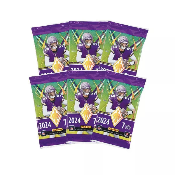 Panini presents the 2024 NFL Phoenix Football Trading Card Mega Box. Each box contains 6 packs with 7 cards per pack. Look for Mega Box Exclusive Orange Parallels! Look for Ultra-Rare Color Blast and Flex Inserts.Look for Autographs from the NFL's Hottest Players! Collect them all. Content may vary.