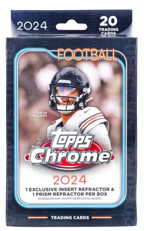 2024 Topps Chrome returns with the top rookies, Best Vets and Legends of the Game. Look for the top stars in this loaded 300 Card-base set.