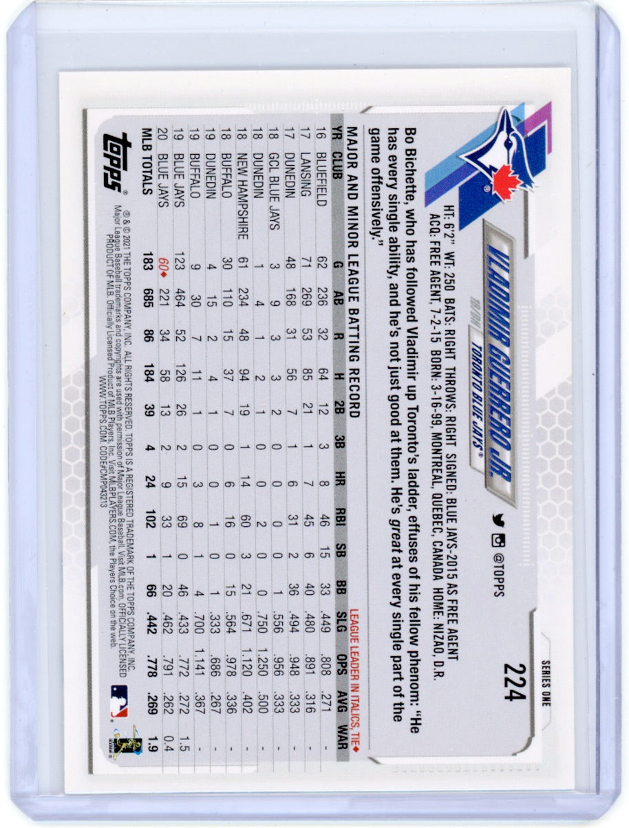2021 Topps #224 Vladimir Guerrero Jr. Blue Jays Card