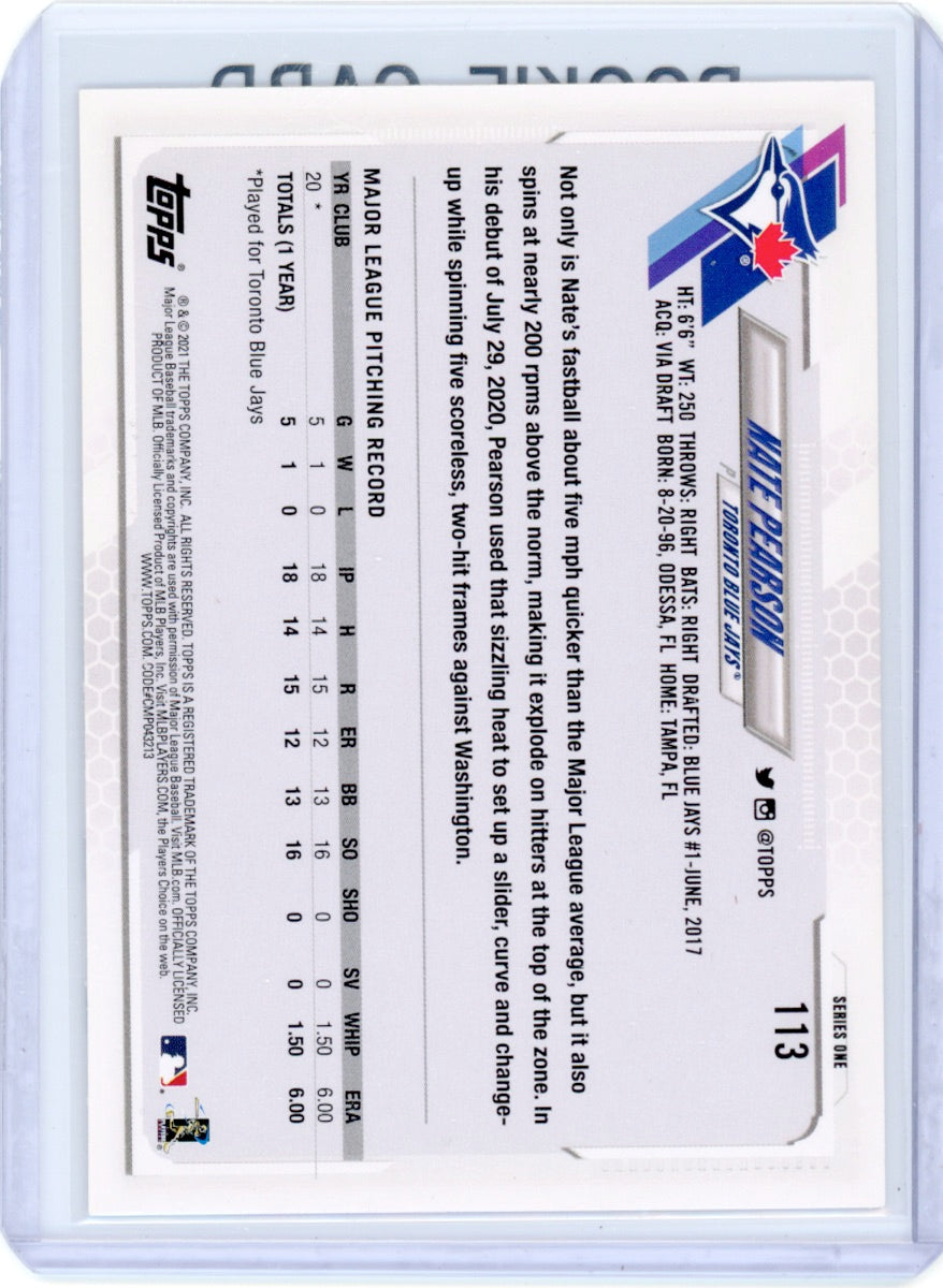 2021 Topps #113 Nate Pearson Rookie (RC) Blue Jays Card