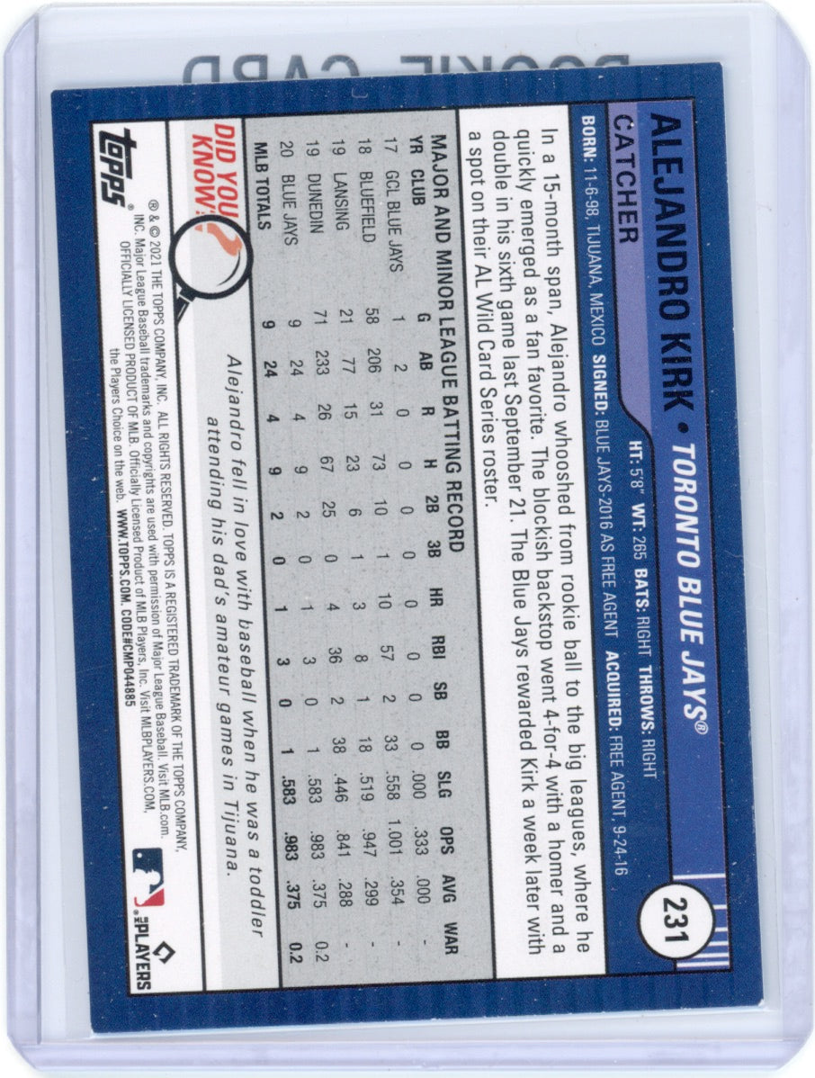 2021 Topps Big League Blue #231 Alejandro Kirk Rookie (RC) Blue Jays Card