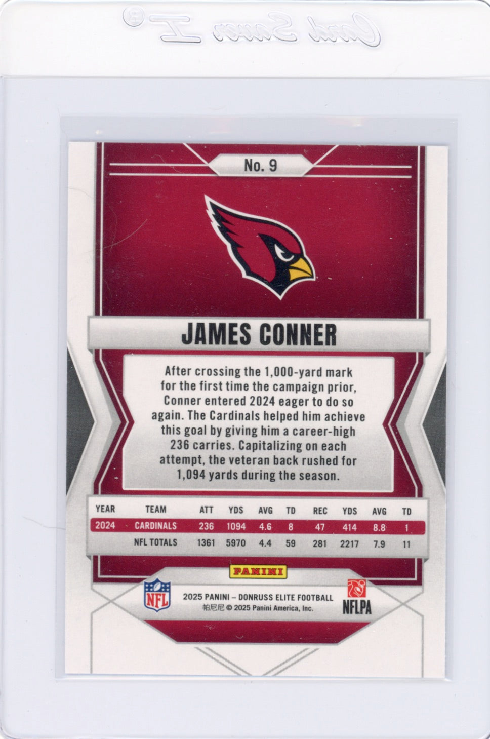 2025 Elite #9 James Conner Arizona Cardinals Card